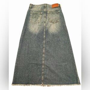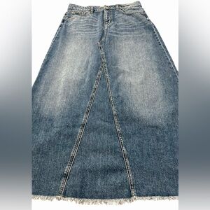 Lucky Brand Skirt Womens 8/29 Blue Denim Maxi A Line Raw Hem High Waist Casual