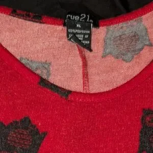 Chic red top w black owl pattern soft material perfect for Christmas or casual dinners