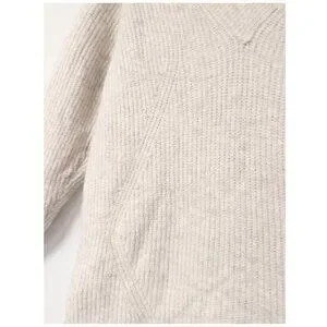 Very lightweight and cozy, v neckline with discreet cable knit - 64% acrylic, 16% nylon, 13% polyester, 4% wool, 3% elastane - oversized fit, lot of room for layering - can wear with slacks or on its own as a dress!