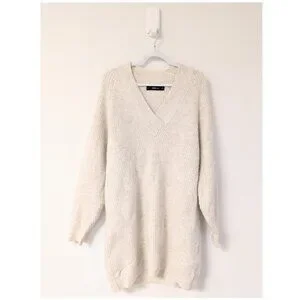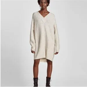 Zara long v-neck sweater dress in heathered oatmeal - Size S - In Excellent Condition!
