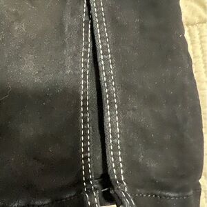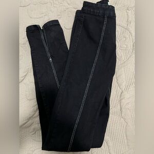Zara Black Denim Jeans Size 4. Fun white stitching down from and back. Has slits in front at bottom.