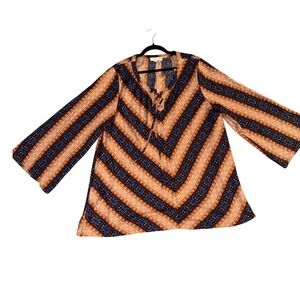 Weekend Suzanne Betro Boho western Chevron Paisley Print Bell Sleeve Tunic top