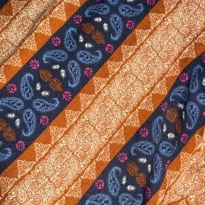 Wrap yourself in vibrant bohemian charm with this Weekend Suzanne Betro tunic. A captivating chevron pattern of paisley and geometric motifs in warm orange, deep navy, and pops of fuchsia creates a visually stunning statement. The dramatic bell sleeves and flattering V-neckline with tie detail add a touch of free-spirited elegance, perfect for a casual day out or a vibrant music festival.