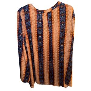 Keywords: bohemian, paisley, chevron, bell sleeve, tunic, plus size, vibrant, geometric, festival, casual, resort, statement top