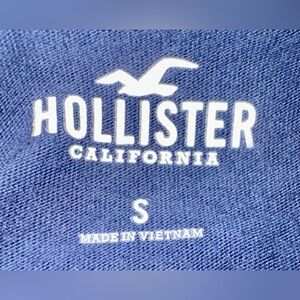 Hollister ‘Twas Lit tee. Navy blue with multicolored lights. Size small. Crew neck, short sleeves, regular fit. 100% cotton. Machine wash cold, tumble dry low.