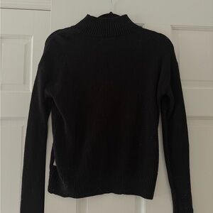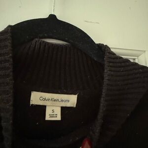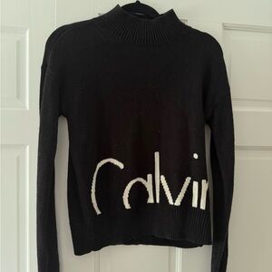 Chic black turtleneck sweater with bold Calvin logo. Soft and stylish for any occasion.