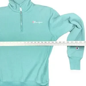 This Champion Sweater is a stylish and versatile addition to any man's wardrobe. The teal green color and solid pattern make it perfect for a variety of occasions, from casual outings to more formal events. Made from a cotton blend with a tight-knit design, this pullover sweatshirt features a 1/4 zip style and long sleeves, making it comfortable and easy to wear. With the Champion logo accent and a regular fit, this sweater is both classic and modern, suitable for all seasons and various activities like walking, golf, and dance.