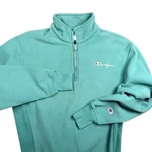Champion Sweater Mens Small 1/4 Zip Pullover Sweatshirt Teal Green Reverse Weave