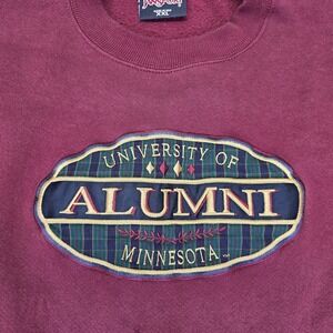 The product is a vintage Jansport University of Minnesota Alumni pullover sweatshirt in men's XXL size. It features the team emblem of the Minnesota Golden Gophers, making it a perfect fan apparel for supporters of the college sports team. This unisex adult sweatshirt is a great way for fans to show their team pride while staying warm and comfortable.