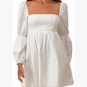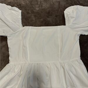 This elegant white dress features stylish puff sleeves and a flattering square neckline. Perfect for any occasion, it offers a chic and timeless look. Size: M Fit: True to size Condition: Brand new in original packaging (didn’t come with tag)