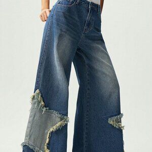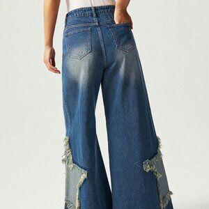 Medium Wash Casual Women's Boho Wide-Leg Jeans