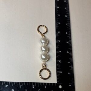 Stylish keychain featuring three large pearls and gold-tone rings. Perfect for adding a touch of elegance to your keys.