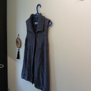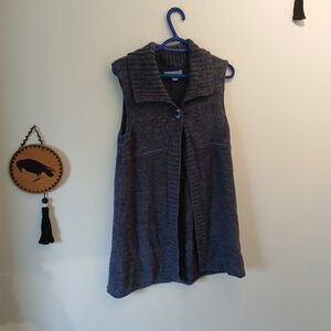 Jessica 1 button cotton sweater vest. Cute for fall or spring, cozy cottagecore style purple and grey tones, cute single large button closure