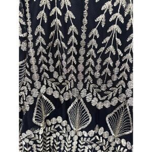 REBA Black Gold Embroidered Sheer Mesh Blouse XL Dressy Evening Party Top