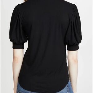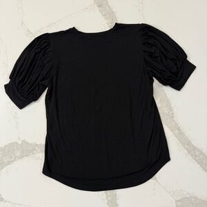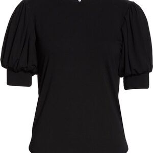 Frame Puff Sleeve Stretch Knit Top Women’s Large Black Jewel Neck Elbow Sleeves