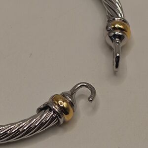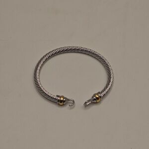 Elegant twisted silver bracelet with gold accents. Classic design by David Yurman. Perfect for any occasion.