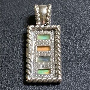Nice sterling silver pendant with 4 different stone insets. Excellent condition and hallmarked 925 on back. Measures a tad over 1.25”.