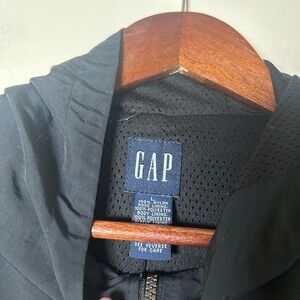 VINTAGE GAP Women Black Hooded Zip Up Jacket Lightweight Parka Size L