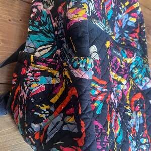 Vera Bradley Iconic Campus Backpack in the vibrant Butterfly Flutter print. This signature quilted cotton backpack is designed for maximum organization, featuring multiple zippered compartments and side slip pockets for water bottles.