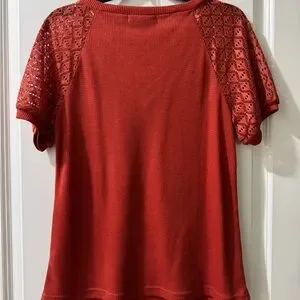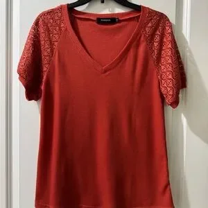Elevate your style with this chic red top from . Featuring elegant lace sleeves, it's perfect for any occasion.
