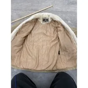 Vintage Tan Suede Faux Fur Trim Collar Cuff Jacket Coat