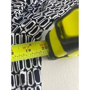 Nine West Black and White Geometric Tiered Mini Dress. V-neck, elastic at wrists, button closure. Relaxed fit. Size Medium