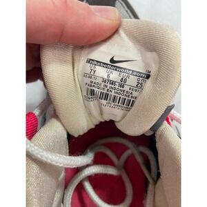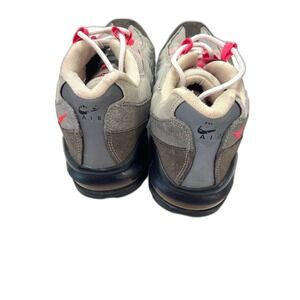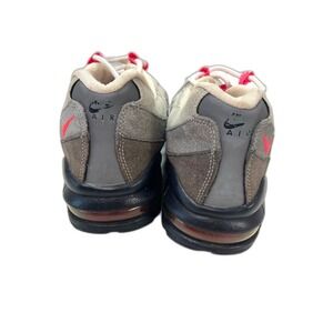 Nike Air Max 95 shoes with solar red accents. Made in 2012. UPC 00886059946236. Size 7 youth. In fair condition. Leather is in great condition. Some wear on the heals and one sole has a defect. See photos.