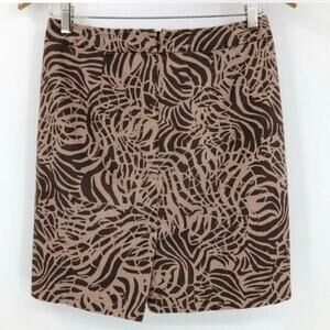 Banana Republic Womens Animal Print Mini Skirt 2 Brown Tan Pencil Tweed Textured