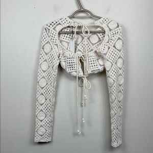 Andrea Iyamah hira Keyhole Crochet Crop Top Swim Cover-Up xs