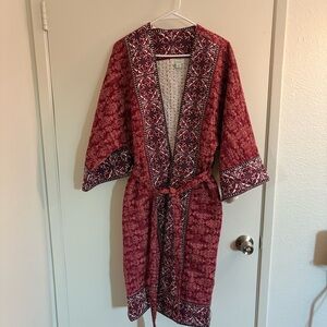 Sundance Cascade Ridge Quilted Kimono Robe in Red and White Size Petite XS/S