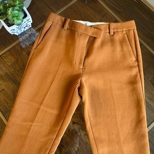 Amazing quality burnt orange tapered wool trousers with hidden zipper and hook closures.
