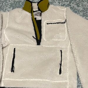 The North men's heritage extreme pile pullover in gardenia white/sulphur moss