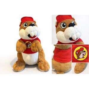 Adorable Buc-ee’s beaver mascot plush stuffed animal featuring the classic red shirt with logo and red hat. Super soft and perfect for collectors, road trip fans, or as a fun gift.