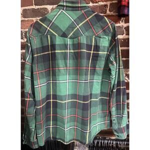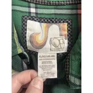 The product is an XL vintage OP Ocean Pacific plaid flannel shirt from the 1990s, featuring a grunge look with a button-front style. Made from 100% cotton, this shirt is ideal for casual occasions. Perfect for fans of 90s surf and grunge fashion, this original piece captures a retro vibe that is both stylish and comfortable to wear.