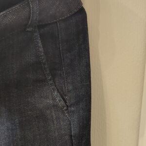 Sophisticated dark jeans with a stylish flare. Features a chic belt detail. Ideal for versatile styling.