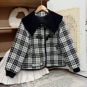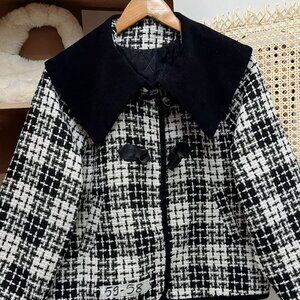 Absolutely adorable tweed jacket with oversized Peter Pan collar!