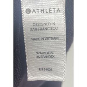 The Athleta Twist Front Coaster Sweatshirt in Wild Raisin Purple, size medium, is a versatile and stylish piece designed for women. Made from a blend of spandex and modal with Lenzing Modal fabric, this pullover sweatshirt features a twist front detail and elastic waist on the back, perfect for travel, activewear, and casual occasions. With a round neckline, long sleeves, and a comfortable regular fit, this sweatshirt offers lightweight stretch, quick dry capabilities, and breathability, making it suitable for all seasons and various activities like gym training, walking, yoga, and athleisure. Perfect for the modern woman looking for comfort, style, and sustainability in her wardrobe. Measurements are 22" wide from underarm to underarm and 23" long.