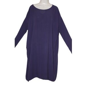 EILEEN FISHER Silk Purple Shift Dress Midi Oversized SZ Large Side Pockets Relax