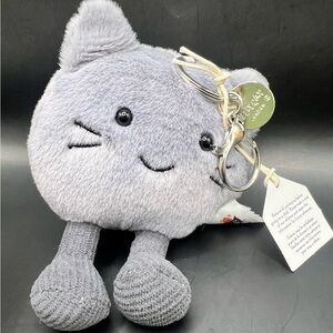 Charming Jellycat keychain with soft gray plush. Features shiny silver accents.