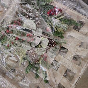 ✔️ Design: Woven Tobacco Basket • Pinecone & Berry Greenery