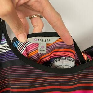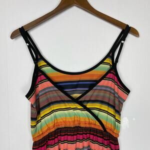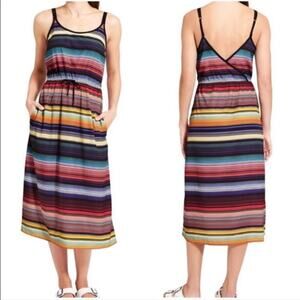 Athleta Havana Vibrant Multi Color Striped Cross V-back Scoop Neck Midi Dress