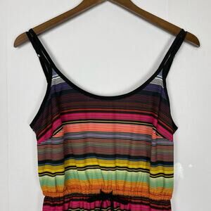 Athleta Havana Multi Color Striped Scoop Neck Elastic Waist Midi Dress