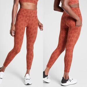 Athleta Ultimate Stash Pocket Snake 7/8 Orange Red Side Pocket Leggings
