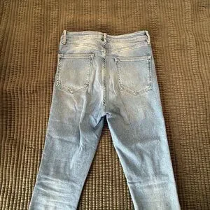 We The Free Anthropologie Light Wash High Rise Raw Hem Skinny Jeans Sz 31