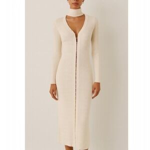 Jonathan Simkhai Ribbed Knit Cutout Choker Neck Wool Midi Dress Cream Size XS