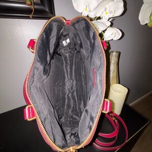 Chic red satchel by Marc Jacobs. Features a stylish gold chain and sleek design. Perfect for elevating any outfit.