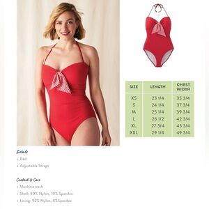 Stylish red one-piece ribbed swimsuit featuring a checkered bow detail. Perfect for a chic beach look! Removable straps. Measurements shown are approximate. In excellent condition!