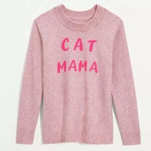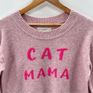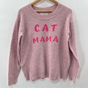 Loft “CAT MAMA” Wool Blend Soft Cozy Pink Crewneck Sweater Size Medium