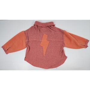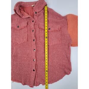 RARE POL Womens Large GKJ5 Fleece Knit Lightning Pink Button Sweater Jacket