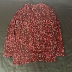 Stylish red and black blouse with chain lace-up detail. Perfect for any occasion.